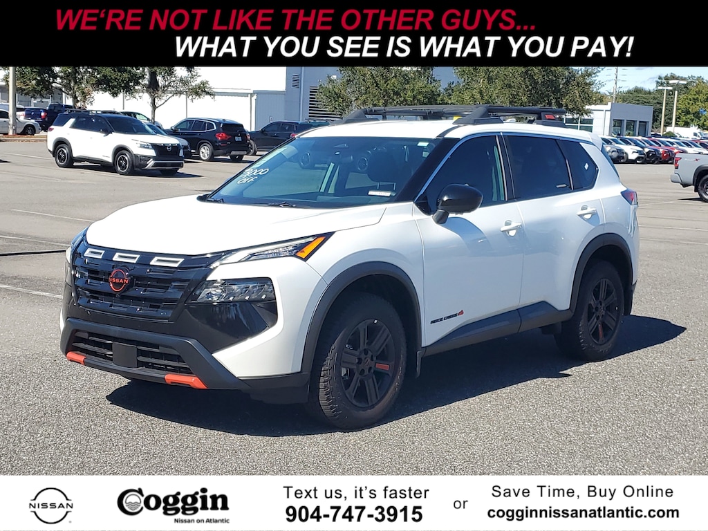 New Arrival! -Great Gas Mileage- *Heated Front Seats* This 2025 Nissan Rogue Rock Creek is Everest White Pearl with a Charcoal interior. This Nissan Rogue Rock Creek comes with great features including: Heated Front Seats, Satellite Radio, Power Lift Gate, Multi-Zone Air Conditioning, Apple CarPlay And/Or Android Auto, Automatic Headlights, Keyless Entry, Roof Rack, Tire Pressure Monitors, and Knee Airbag . It is rated at 32.0 MPG on the highway which is fantastic! Buy with confidence knowing Coggin Nissan on Atlantic has been exceeding customer expectations for many years and will always provide customers with a great value!