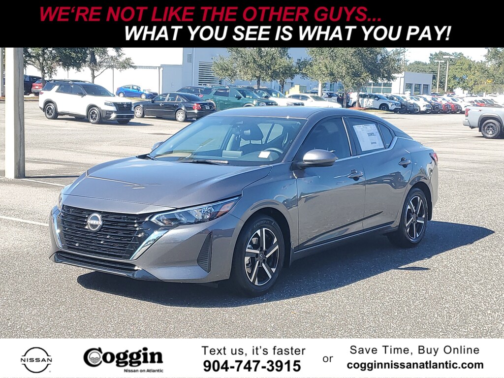 This 2025 Nissan Sentra SV will sell fast! This Sentra has many valuable options! Satellite radio. Aux. Audio Input. -Automatic Headlights -Security System -Parking Sensors -Keyless Entry -Steering Wheel Controls -ContinuouslyVariable Transmission -Alloy Wheels On top of that, it has many safety features! -Brake Assist -Traction Control -Stability Control Save money at the pump, knowing this Nissan Sentra gets 40.0/30.0 MPG! Call Coggin Nissan on Atlantic at (904) 747-3915 to confirm availability and schedule a no-obligation test drive! We are located at 10600 Atlantic Boulevard, Jacksonville, FL 32225.