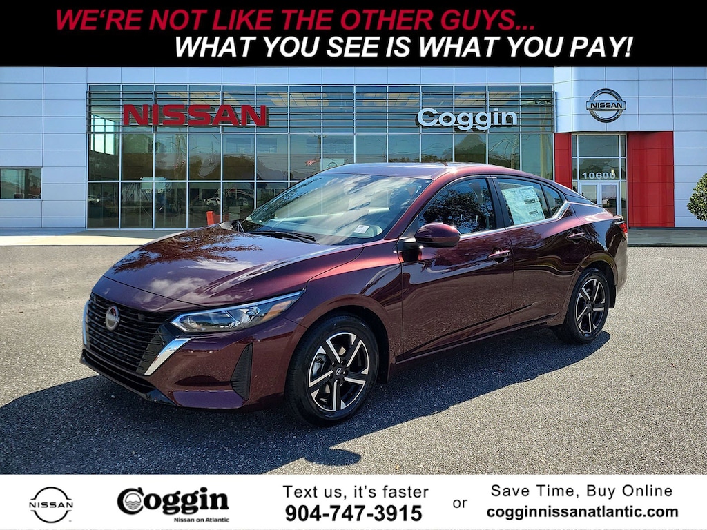 -Great Gas Mileage- This 2025 Nissan Sentra SV is Rosewood Metallic with a Charcoal interior. This Nissan Sentra SV comes with great features including: Satellite Radio, Parking Sensors, Automatic Headlights, Keyless Entry, Rear Spoiler, Tire Pressure Monitors, Knee Airbag, Stability Control, Cruise Control, and Security System . It is rated at 40.0 MPG on the highway which is fantastic! Buy with confidence knowing Coggin Nissan on Atlantic has been exceeding customer expectations for many years and will always provide customers with a great value!
