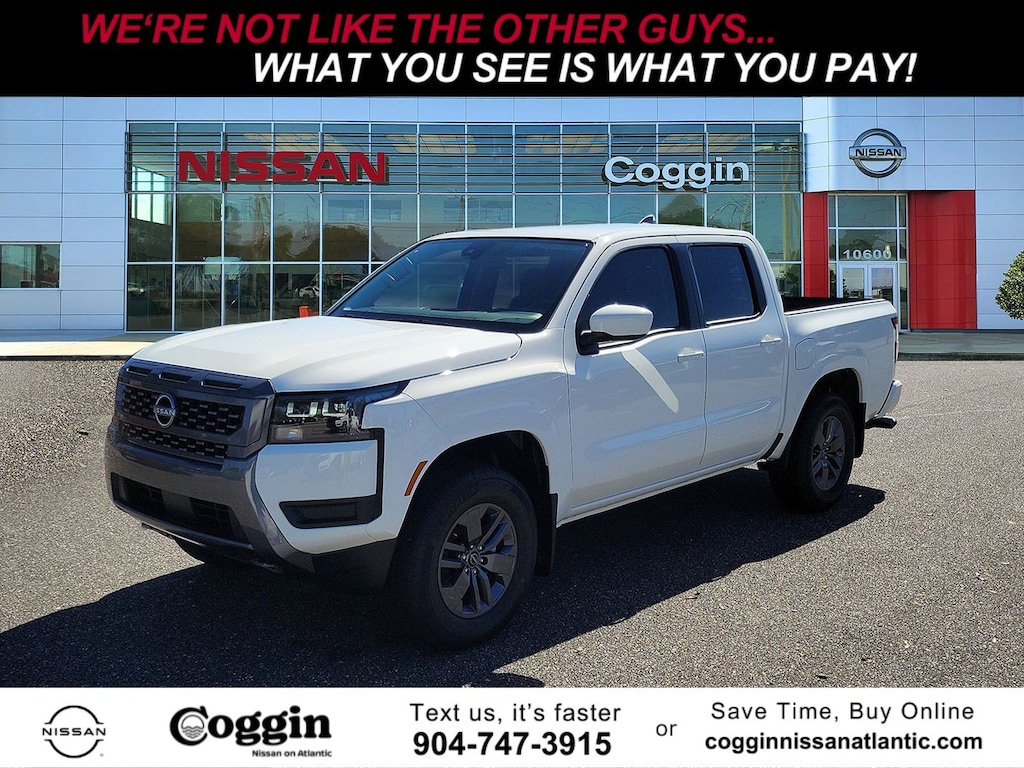 This 2026 Nissan Frontier SV will sell fast! This Frontier has many valuable options! Satellite radio. Aux. Audio Input. -Automatic Headlights -Security System -Keyless Entry -Steering Wheel Controls -Towing Package -Automatic Transmission -Alloy Wheels On top of that, it has many safety features! -Brake Assist -Traction Control -Stability Control Save money at the pump, knowing this Nissan Frontier gets 23.0/18.0 MPG! Call Coggin Nissan on Atlantic at (904) 747-3915 to confirm availability and schedule a no-obligation test drive! We are located at 10600 Atlantic Boulevard, Jacksonville, FL 32225.