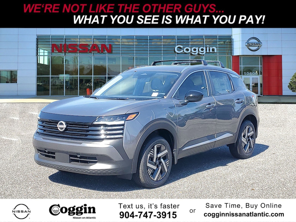 This 2026 Nissan Kicks SV will sell fast! This Kicks has many valuable options! Backup Camera. Panoramic Sunroof. -Heated Front Seats -Heated Mirrors -Auto Climate Control -Automatic Headlights -Security System -Keyless Entry -Steering Wheel Controls -ContinuouslyVariable Transmission On top of that, it has many safety features! -Brake Assist -Traction Control -Stability Control Save money at the pump, knowing this Nissan Kicks gets 35.0/28.0 MPG! Call Coggin Nissan on Atlantic at (904) 747-3915 to confirm availability and schedule a no-obligation test drive! We are located at 10600 Atlantic Boulevard, Jacksonville, FL 32225.