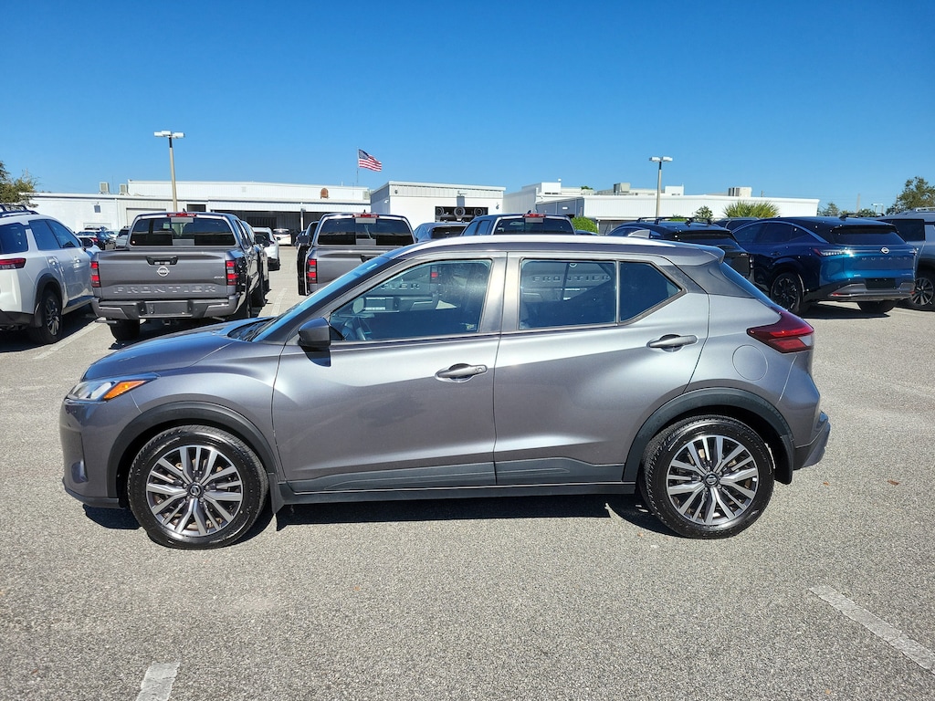 The 2021 Nissan Kicks SV stands out with its bold styling, floating roof design, and signature V-Motion grille. Distinctive LED lighting and aerodynamic lines give it a sporty, upscale look. Combining fuel efficiency, versatility, and advanced safety, the Kicks SV is a smart choice for drivers seeking practicality with modern flair in a compact SUV.